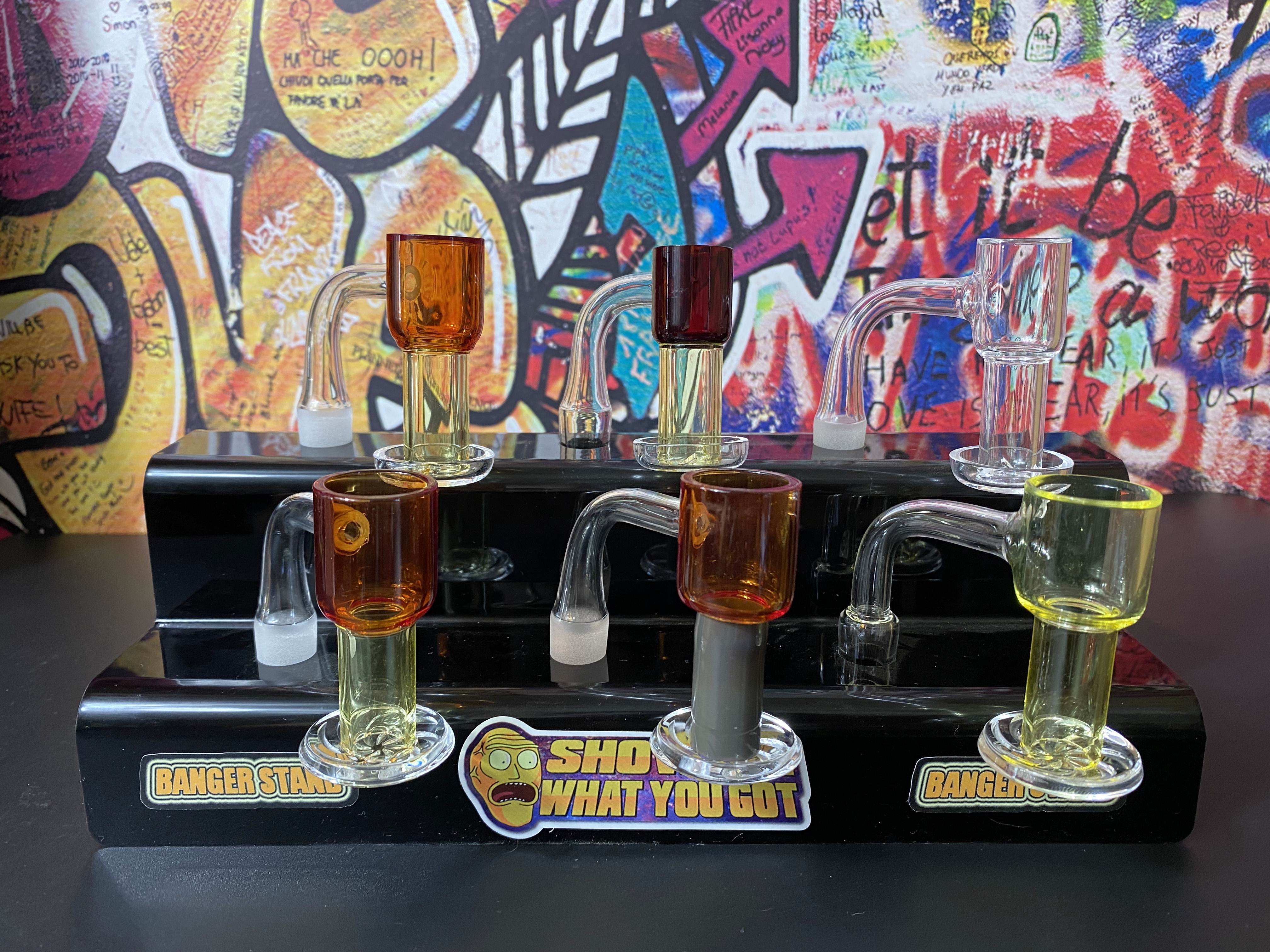 Quartz Bangers and quartz dab nails offer optimal dab flavor for the low temp dabbing technique. A quartz banger requires the use of a butane torch or enail set up and makes a great upgrade to any dab rig. Made of 100% pure quartz these nails offer proper heat retention and airflow when paired with a compatible fitting carb cap and terp pearls. Being that quartz is purer than traditional glass, quartz bangers have a higher burning temperature making them a superior choice over other glass and titanium dabbing nails